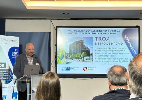 Por último, el galardón también ha recaído en TROX España gracias al sistema de ventilación y tratamiento de aire que ha instalado en la nueva sede de oficinas de Metro de Madrid. Basado en la tecnología que ofrecen los Sistemas Aire-Agua de la firma, esta solución se caracteriza, además de por un diseño muy estético, por ser altamente confortable y eficiente.