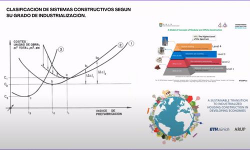El ponente invitado, Juan Carlos Cabrera, Director del Curso de Técnico en Construcción Industrializada en el Colegio Oficial de Aparejadores y Arquitectos Técnicos de Madrid, compartió su experiencia y conocimientos sobre este tema emergente. Cabrera destacó la importancia de entender la construcción industrializada como un proceso complejo que va más allá de la simple edificación de estructuras físicas.
