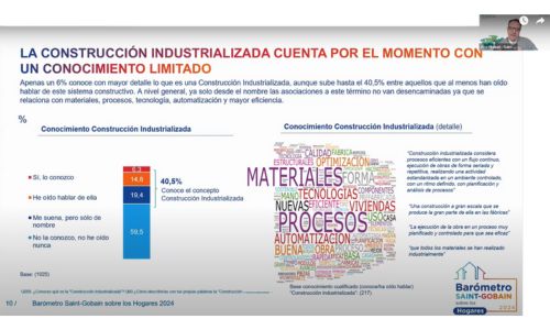 “La construcción industrializa todavía es una gran desconocida y hay que trabajar hacia el mercado. Apenas un 6% conoce con mayor detalle lo que es la construcción industrializa, aunque sube hasta el 40,5% entre aquellos que al menos han oído hablar de estos sistemas constructivos. A nivel general, ya solo desde el nombre las asociaciones a este término no van desencaminadas ya que se relaciona con materias, procesos, tecnología, automatización y mayor eficiencia”, expuso José Manuel Garcilópez Mora, Director de Construcción Industrializada de Saint-Gobain España.