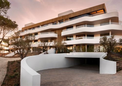 Los apartamentos, de entre 157 y 660 metros cuadrados, destacan por su estilo mediterráneo, donde la luz natural es la protagonista y grandes terrazas rodean cada vivienda. El interiorismo, creado por el equipo de L35 Architects, reinterpreta el estilo mediterráneo con sofisticación y elegancia, utilizando materiales nobles para crear ambientes acogedores.