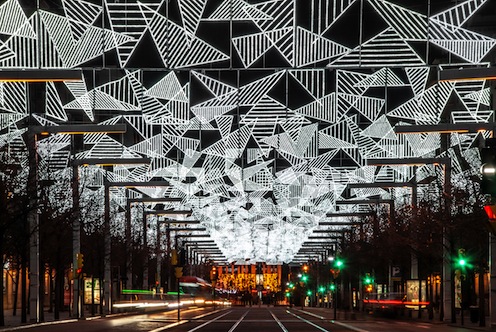 Otra obra, más reciente y de gran impacto para aquel que la observa, es el proyecto Estrellas que por segundo año consecutivo ilumina El Paseo de la Independencia de la ciudad de Zaragoza. Las figuras de las que parte el diseño de este proyecto son las estrellas. Estas quedan fragmentadas, convirtiendo cada una de sus puntas en piezas triangulares independientes que al iluminarse quedan suspendidos en el cielo. “Esos pedazos de estrellas quieren ser un homenaje a las víctimas mortales de la Covid-19, a todos aquellos que ya no podrán pasar la Navidad con nosotros”, explican desde el estudio.