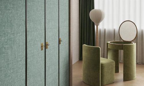 Uno de los grandes protagonistas de la colección es Essentials Brushed Suede, un revestimiento que imita con fidelidad la técnica artesanal brushed suede (o "ante cepillado"). Esta técnica pictórica se caracteriza por aplicar pintura en patrones específicos para lograr un acabado suave y texturizado que recuerda al ante. Sin embargo, su elaboración tradicional es un proceso lento y exigente.