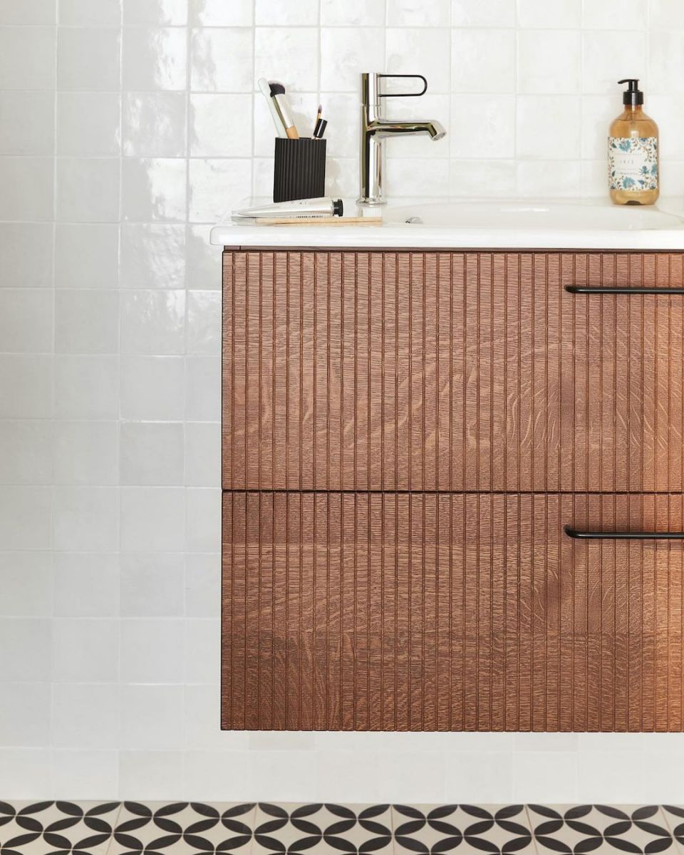 Este material da un toque diferenciador al cuarto de baño, acompañando a otros acabados como mármol y a tonos claros y naturales. Aportando así calidez a esta estancia, el modelo Odeón Rive Gauche de Jacob Delafon dispone de esta nueva versión Signature en madera maciza en acabado Roble Torrefield. Este mueble ofrece una estructura moderna y desenfadada capaz de hacer el contraste perfecto con el resto del espacio.