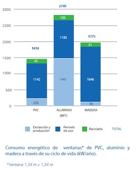 En un análisis de los doctores José María Baldasano Recio y M. Violeta Varga-Parra (2017) sobre el consumo energético y emisión de CO2 asociado al ciclo de vida de las ventanas de PVC, aluminio y madera, se deduce que el material que presenta menor consumo de energía y emisión de CO2 en el cálculo del ciclo de vida es la ventana de PVC.