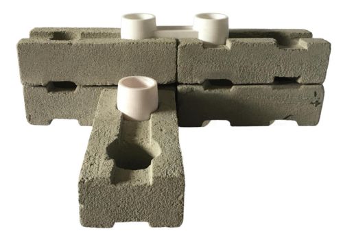 Cada capa de ladrillos se coloca, y los insertos Linko, fabricados con material de desecho plástico reciclado, se encajan en los canales y orificios de los ladrillos de mampostería especialmente diseñados. Esto crea un entrelazado seguro y firme que asegura los ladrillos vecinos, formando una pared de ladrillos resistente. Además, para construir esquinas y paredes internas, se utilizan insertos Linko de 90 grados en lugar del estándar.