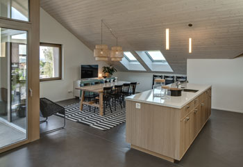 Los arquitectos han conseguido convertir una “central energética” en una casa estéticamente atractiva. Por ello, los paneles solares de la fachada son de color mate. Además de producir electricidad, la fachada tiene una mayor longevidad que otras fachadas convencionales. La simbiosis de arquitectura y tecnología permite ya hoy en día que se puedan realizar proyectos sostenibles y económicamente atractivos.