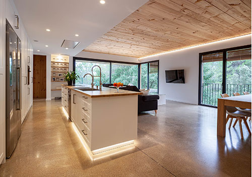 Respecto al interior, House Habitat ha creado un espacio que favorece el bienestar, donde a la calidez ambiental de la madera y sus cualidades relacionadas con la salud, se une la utilización de materiales naturales, como los aislamientos, las pinturas y barnices. Incluso los muebles y armarios –también fabricados por House Habitat- están libres de formaldehído, uno de los Compuestos Orgánicos Volátiles (COVs) más nocivos.