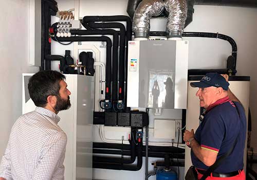 La vivienda ha obtenido la calificación A en el certificado energético. Con el objetivo de lograr una temperatura confortable con un consumo muy bajo de energía, el diseño optimiza los recursos naturales, captando la máxima radiación solar durante los meses fríos y protegiéndose de éstos durante los meses de calor. Además, se ha instalado un sistema de aerotermia mediante suelo radiante y refrescante más fancoils; mientras que el agua se calienta a través de placas solares. Adicionalmente, aunque no es necesaria, la casa tiene una estufa de leña para aportar un ambiente más hogareño.