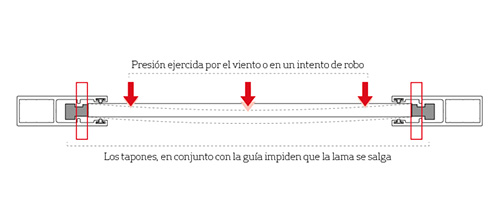 La guía y tapones especiales en los extremos de cada lama de Extreme (sistema compatible con modelos de lama Segur EC60 y VS-150 Block 60) impiden que, en conjunto, esta se salga, aportando un extra de resistencia y seguridad al conjunto de la ventana o puerta, pudiendo deformarse ante una extraordinaria presión, pero sin llegar a romperse. “La resistencia del sistema Extreme y los grandes resultados que nos ha aportado, también en países con climas extremos, nos ha hecho empeñarnos en seguir trabajando por ofrecer valores de seguridad inmejorables. Ahora soporta la presión de vientos huracanados de escalas superiores a las que existen”, explica el director técnico de Persax.