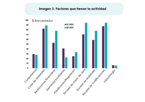 El informe también destaca que el coste de los materiales y las limitaciones financieras se consideran factores que afectan negativamente a la actividad del mercado. A medida que el Banco Central Europeo aumenta los tipos de interés, las restricciones financieras se perciben como un obstáculo cada vez mayor para la producción en la construcción.