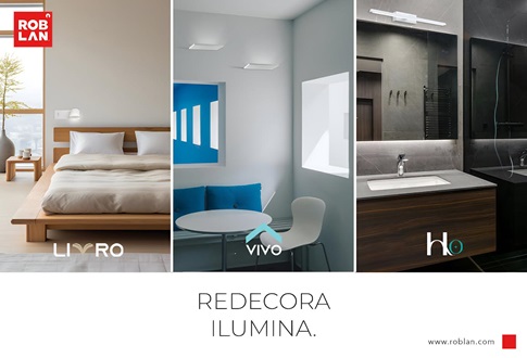 ROBLAN, empresa española líder en iluminación LED, presenta cuatro nuevas gamas lumínicas. H2O -para espacios húmedos-, VIVO -apliques y plafones LED decorativos para interiores-, LIVRO -apliques decorativos para luz de lectura-, y ZOA -iluminación decorativa de exteriores-.