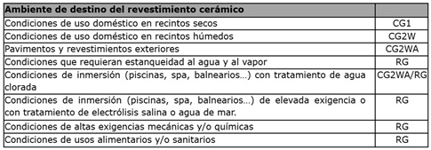 En el caso de los adhesivos del tipo CG cementosos, la norma establece dos clases: