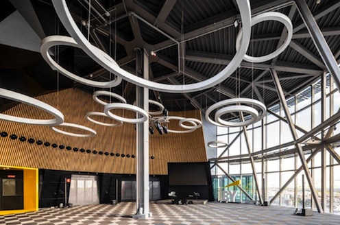 Asimismo, otra de las soluciones técnicas singulares que caracterizan esta sala de eventos es su pavimento. Dado que el ajetreo y el tránsito del día a día es elevado, POLYGROUP, compañía internacional con base en Sevilla fabricante de suelos técnicos de alta calidad, ha aportado su experiencia para la configuración de un sistema de pavimento innovador y estable, denominado GAMAFLOR FULL STEEL; una tecnología que sólo fabrica POLYGROUP en toda Europa y que, además, ha obtenido recientemente la clasificación Leed Gold que proporciona créditos Leed al edificio.