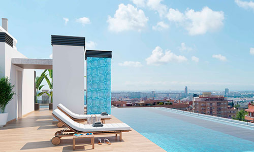 En la configuración de la obra priman las amplias terrazas y grandes ventanales con espectaculares vistas sobre el skyline de Barcelona y el Baix Llobregat. Además, la urbanización disfruta de piscina y solárium en la cubierta.