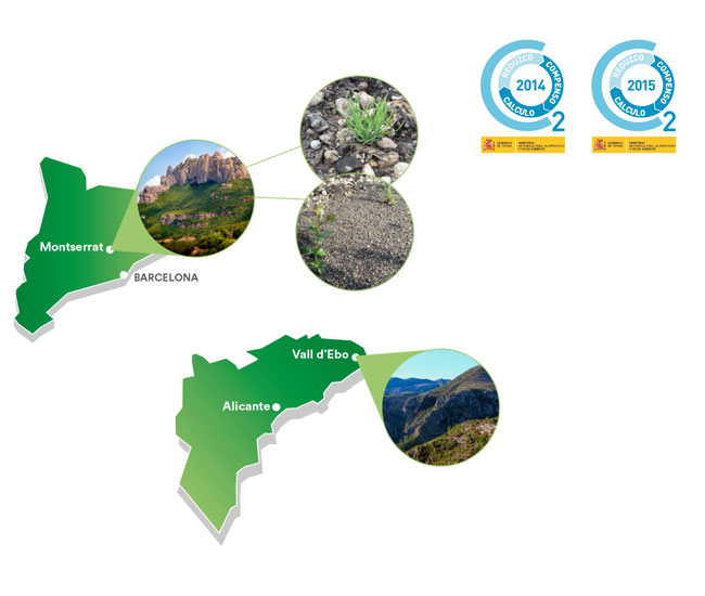 La compañía ha plantado 16.000 nuevos árboles para compensar sus emisiones de CO2 del año 2015 en los montes que sufrieron un incendio forestal en la Vall d’Ebo, (Alicante). Los dos nuevos sellos se suman a los ya otorgados por el Ministerio de Agricultura y Pesca, Alimentación y Medio Ambiente en 2016 por reforestar un área de 132.000 m2 en Montserrat (Barcelona) para compensar la totalidad de sus emisiones de 2014.