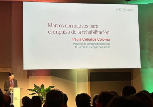 Posteriormente, Paula Ceballos, portavoz de la Representación de la Comisión Europea en España, compartió preocupantes estadísticas: "Entre un 15-20% de la población no puede mantener su casa suficientemente caliente en invierno", destacando que 3 de cada 4 edificios son ineficientes.