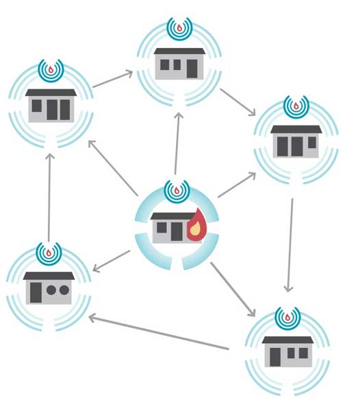 En sus investigaciones han llegado a la conclusión que para proporcionar una alerta temprana efectiva es necesario avisar a toda la comunidad. Los dispositivos responden a este reto, ya que están conectados en red todos los dispositivos dentro de un radio de 60 metros. En el caso de un incendio, los dispositivos dentro de este campo sonarán juntos, y crean así una respuesta del grupo. Esto permite a los comunidades reaccionar de forma correcta y rápidamente ante un incendio.