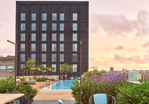Esta comunidad se aloja en 350 habitaciones que varían en tamaño y servicios, compartiendo vistas y perspectivas cautivadoras. Algunas habitaciones ofrecen una doble vista, brindando la oportunidad de admirar tanto el patio interior como el animado entorno de Poblenou. Simultáneamente, otras habitaciones, que varían en profundidad o anchura, se abren al sereno patio interior.
